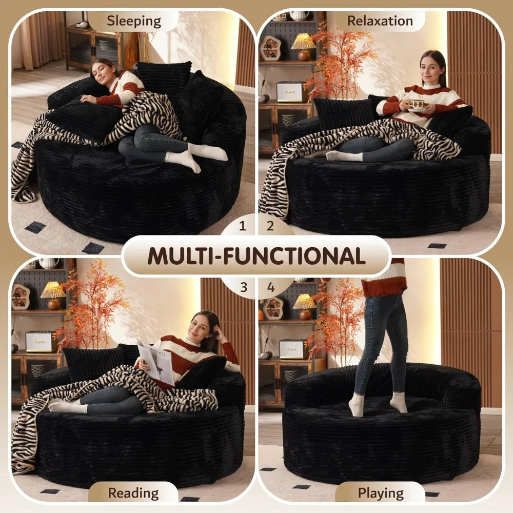 - Oversized Leisure Round Chair: Equipped with 10-inch wide square arms, providing loose and leisurely arm support. The 58" W*40" D seating is spacious enough for curling up, reading a book, or napping on the sofa.