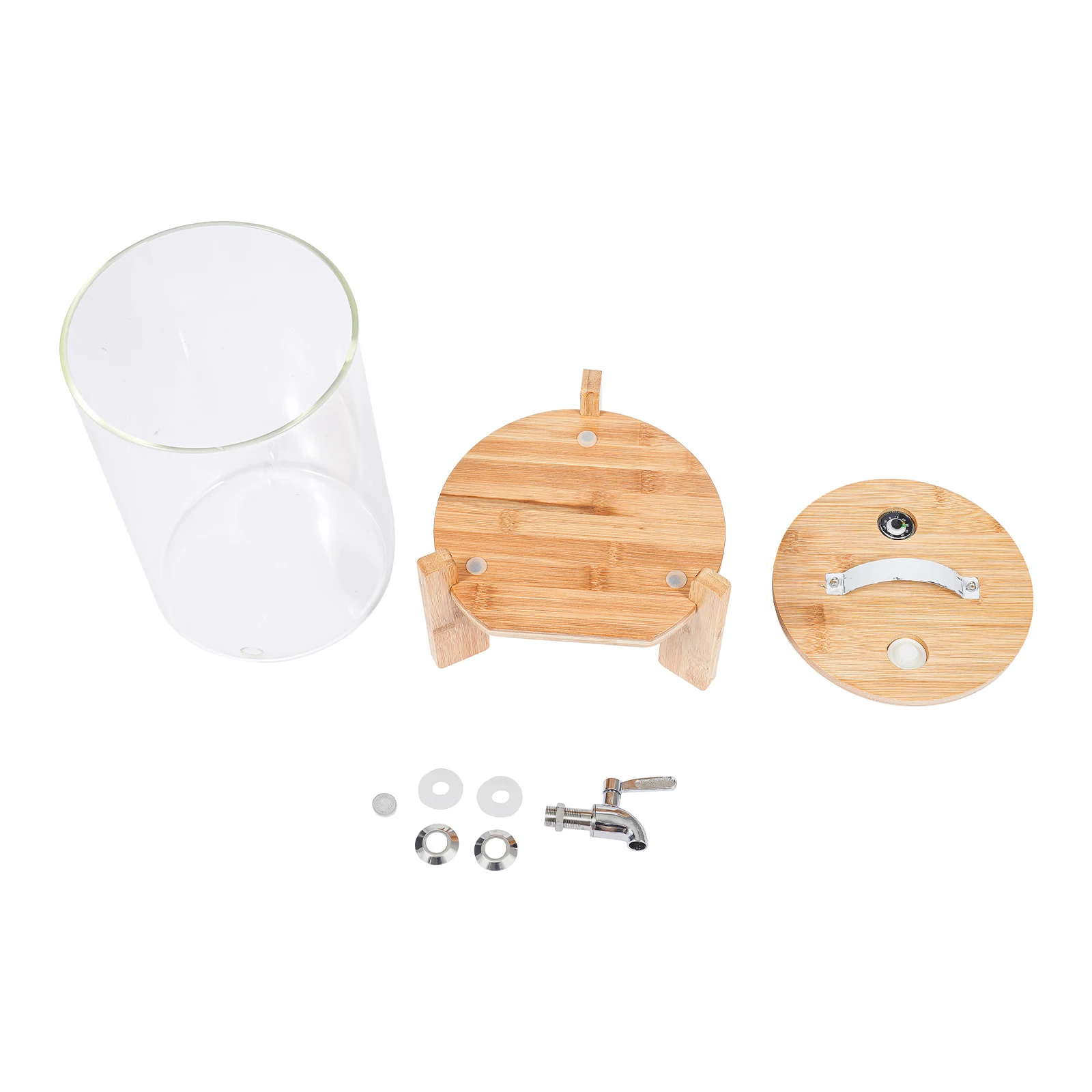 The product is made of high borosilicate glass, 304 stainless steel, and carbonized bamboo board, allowing for extended service life. The lid with an exhaust valve and a thermometer guarantees the cleanliness of the beverage and facilitates your use. The spigot makes it easy to dispense drinks without leakage.