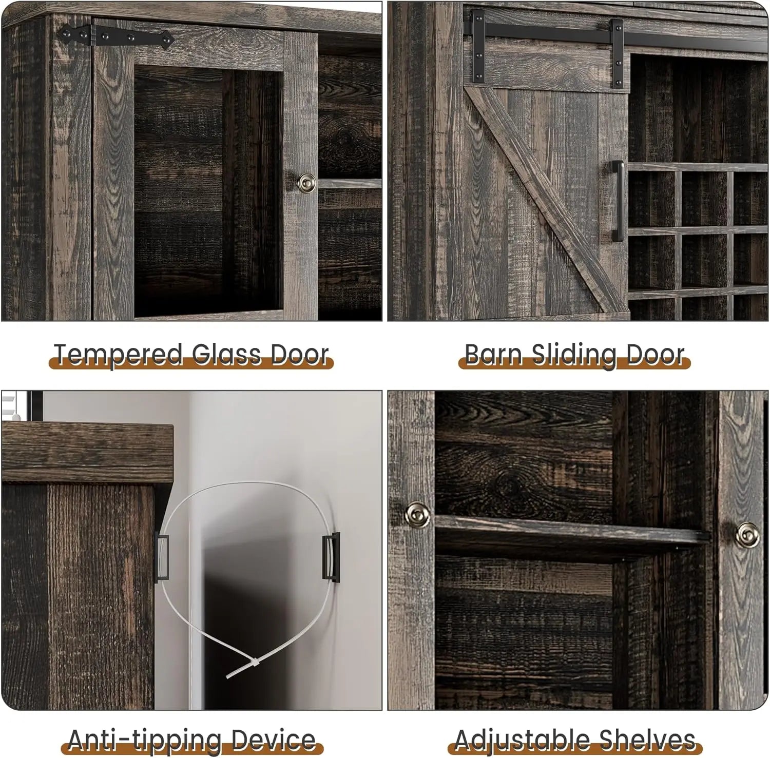 【Farmhouse Coffee Bar Cabinet with Sliding Barn Doors】Bring rustic warmth into your dining room or kitchen with this tall bar cabinet that doubles as a farmhouse coffee bar, liquor cabinet, or china hutch. The smooth-gliding barn doors save space while offering easy access—ideal for creating your perfect coffee nook or home bar. Its versatile design fits seamlessly as a kitchen coffee bar cabinet, wine bar cabinet, or hutch cabinet with storage, blending charm and function.