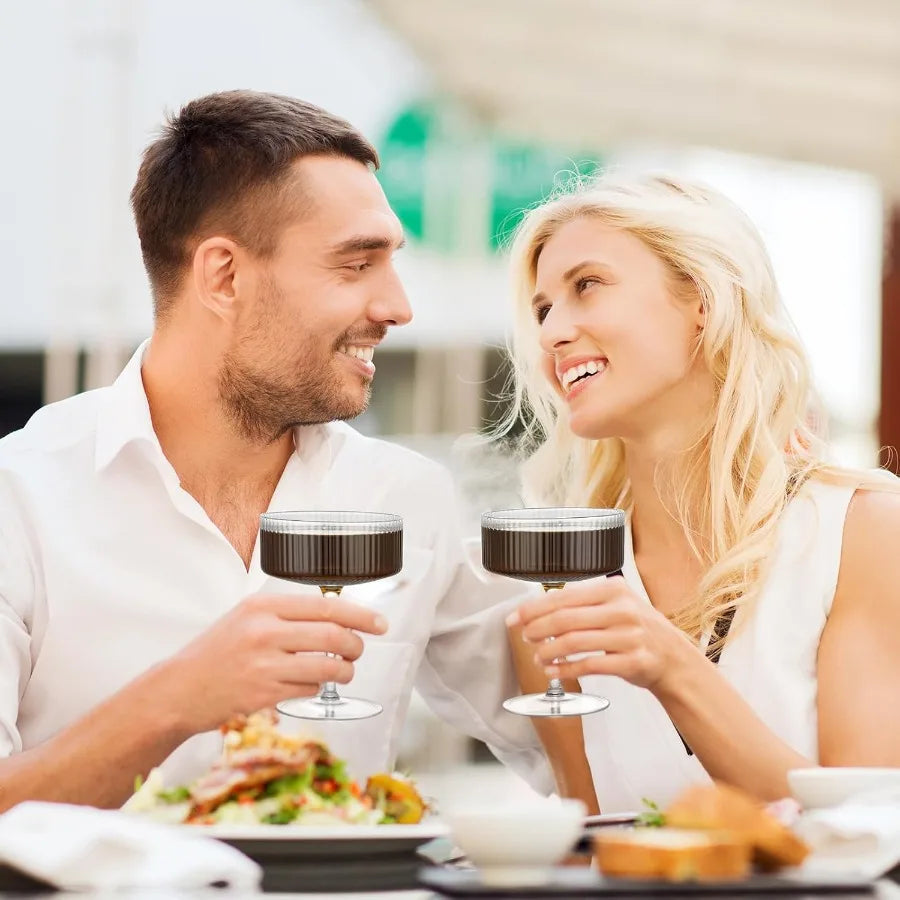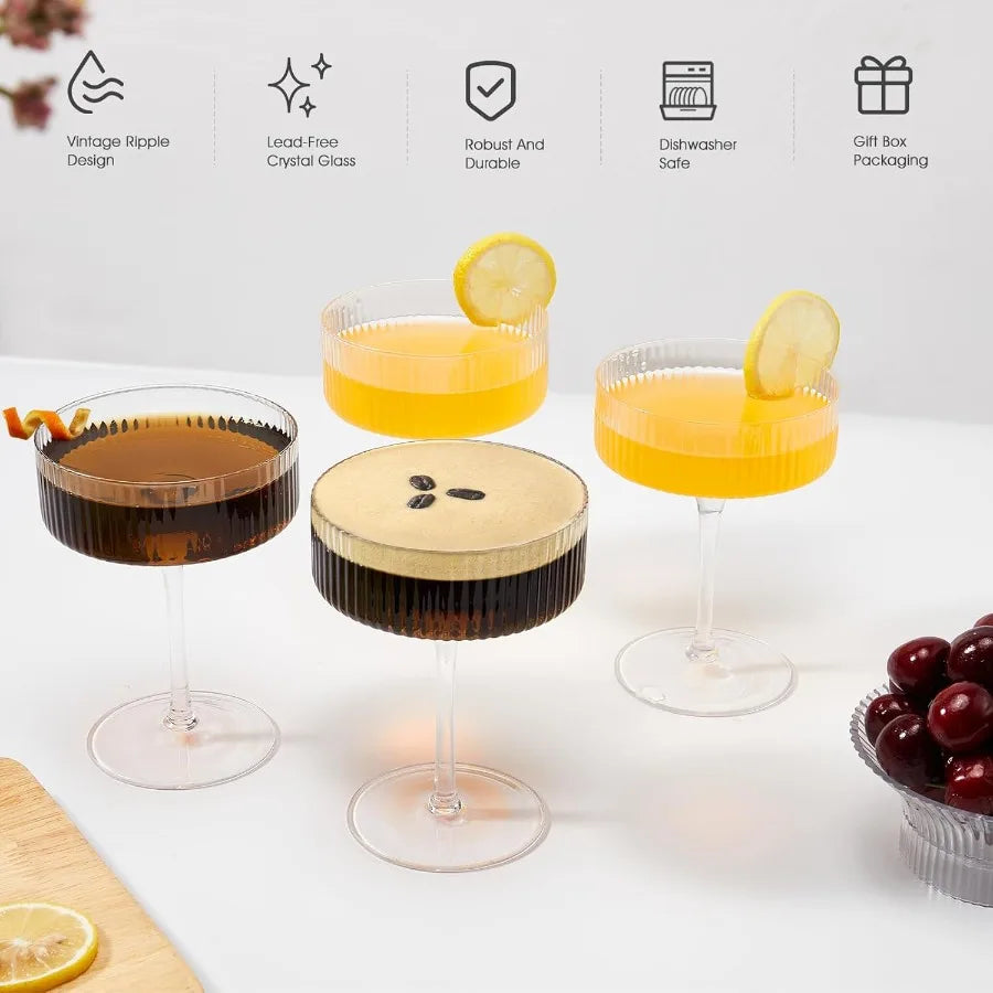 Hand-blown 10 oz Vintage Cocktail Glasses Set of 4 with Ribbed Design for Espresso Martini Champagne Cosmopolitan Manhattan Ele